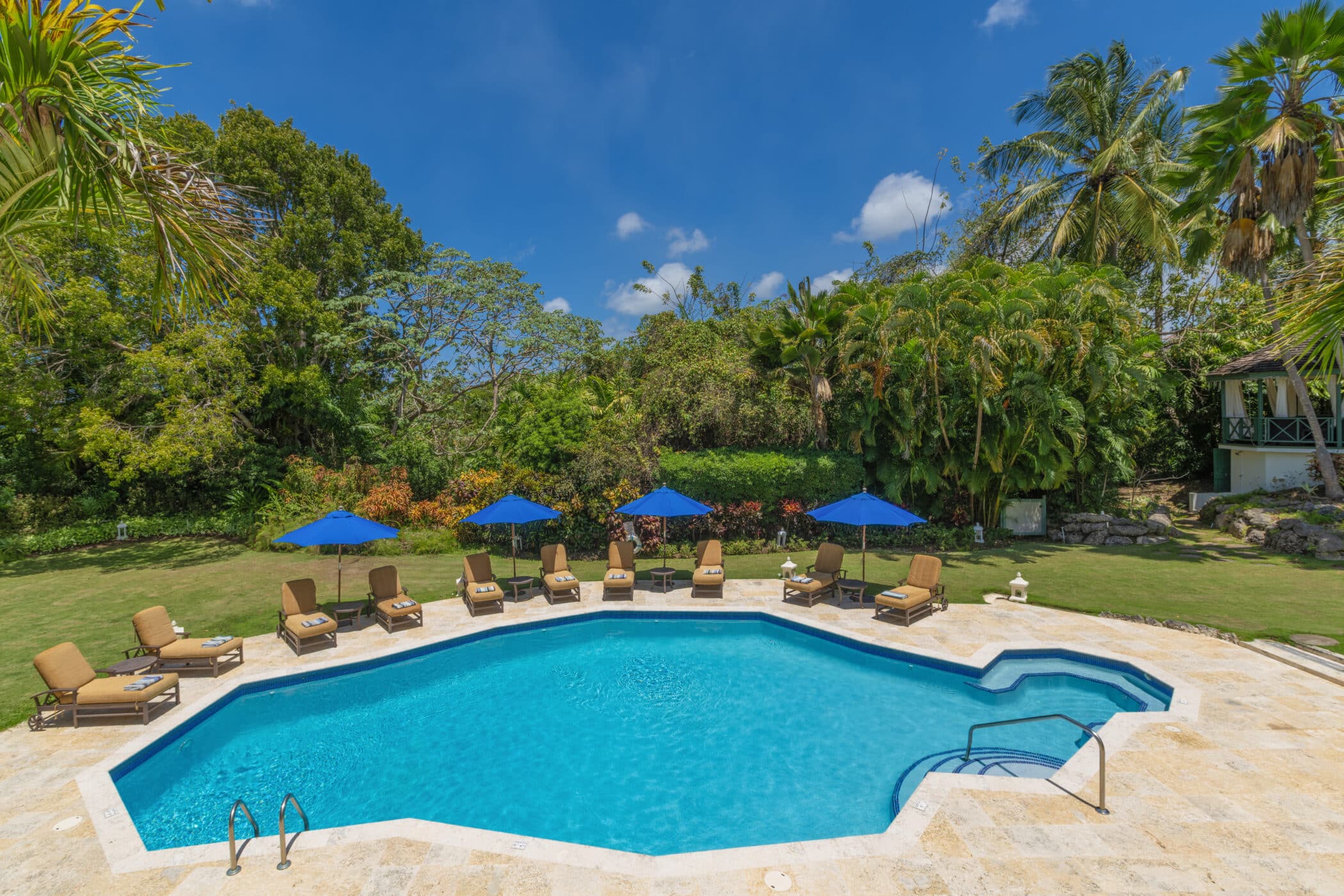 Discover this stunning tropical villa featuring 9 en-suite bedrooms that accommodate up to 18 guests, making it perfect for unforgettable family getaways. Nestled on the Sandy Lane Estate’s elevated grounds, this property operates like a high-end boutique hotel, ensuring exceptional standards throughout your stay.
