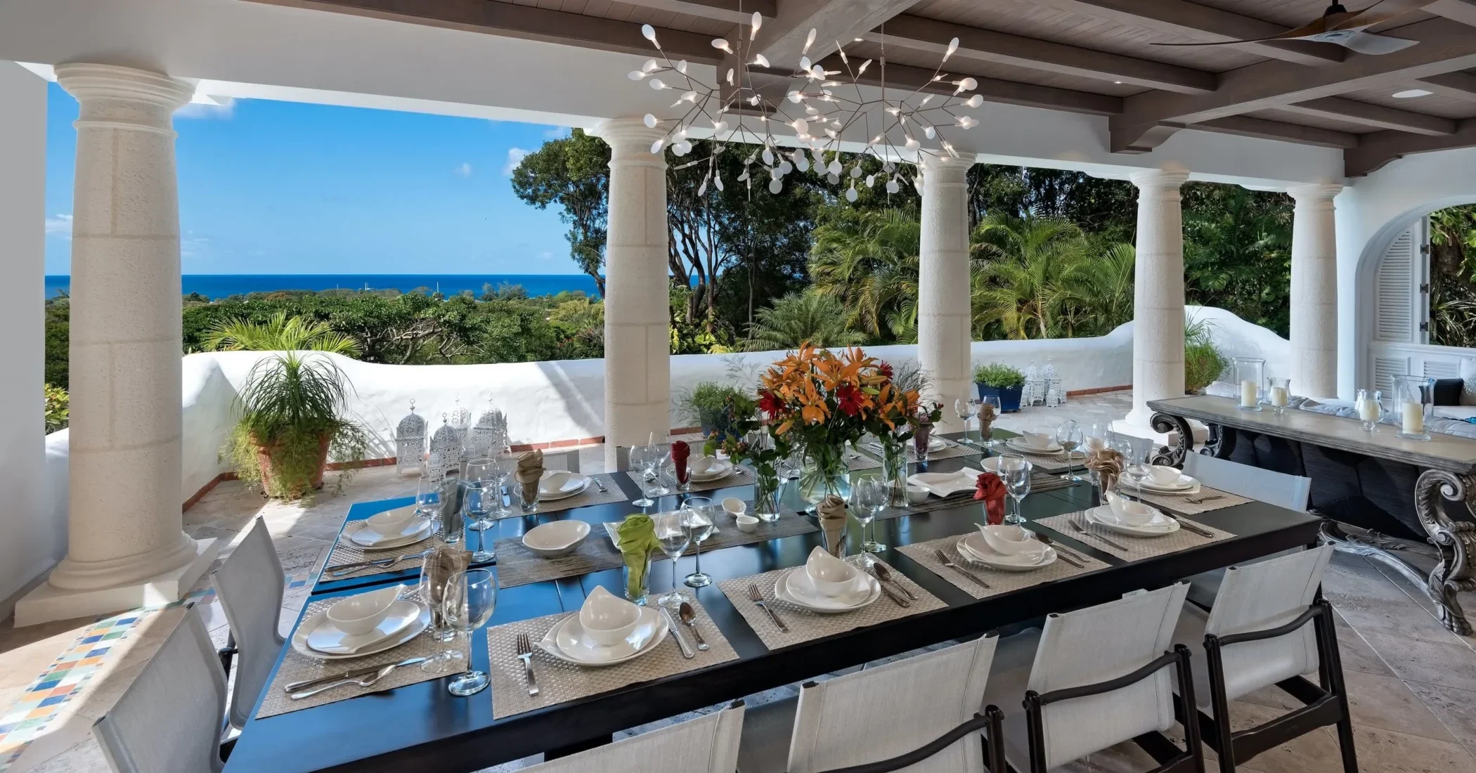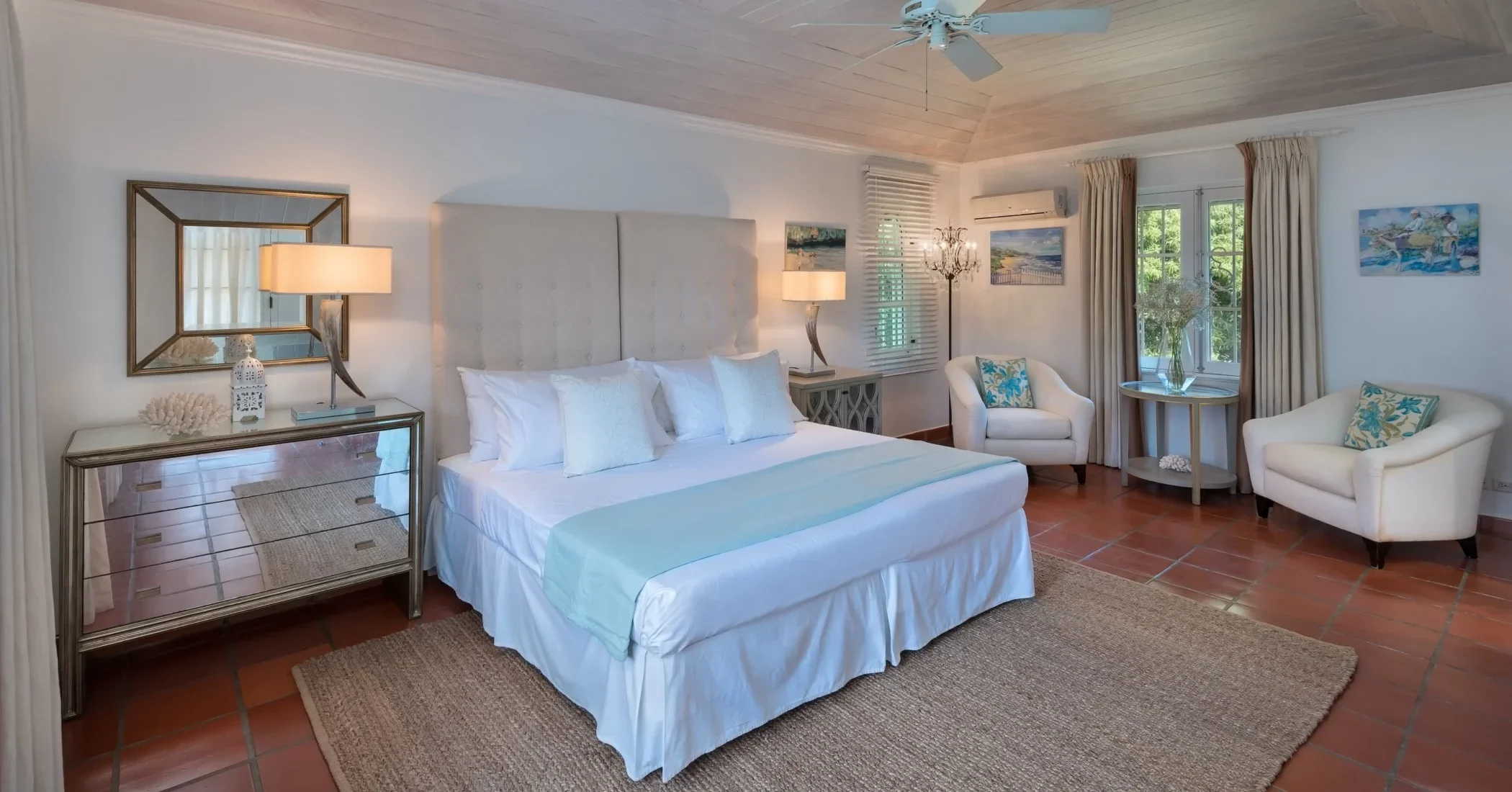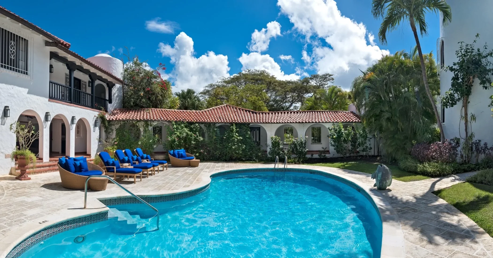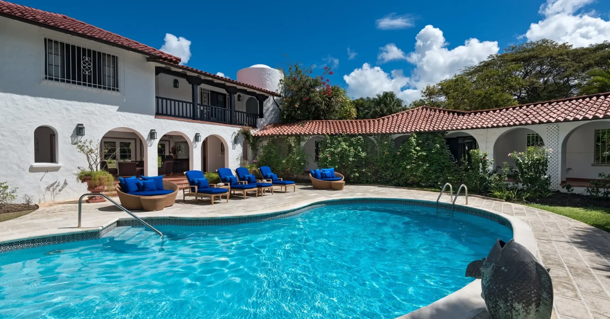Elsewhere is an exceptionally beautiful villa that sprawls on the Sandy Lane estate. This recently renovated and extended property is surrounded by greenery: arise to the antics of green monkeys in the gardens, observe the hummingbirds, sailing ships and flowering trees by day and catch wonderful views of the sunset each evening. The breeze constantly flows through the various courtyards, patios, loggias, balconies and terraces of this villa that sprawls over two acres on a ridge.