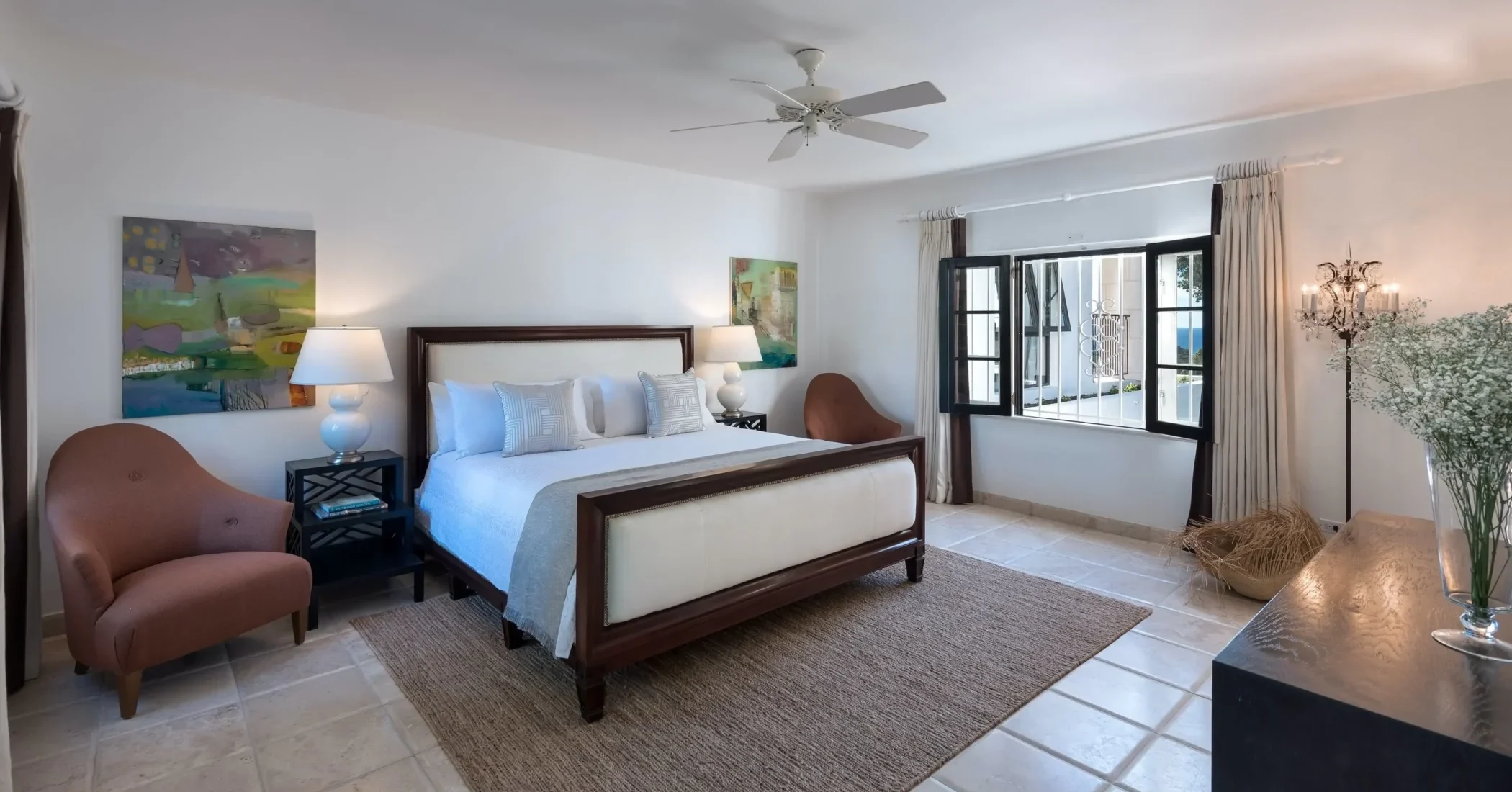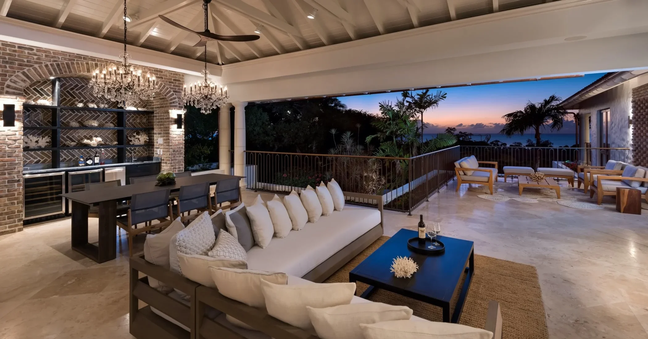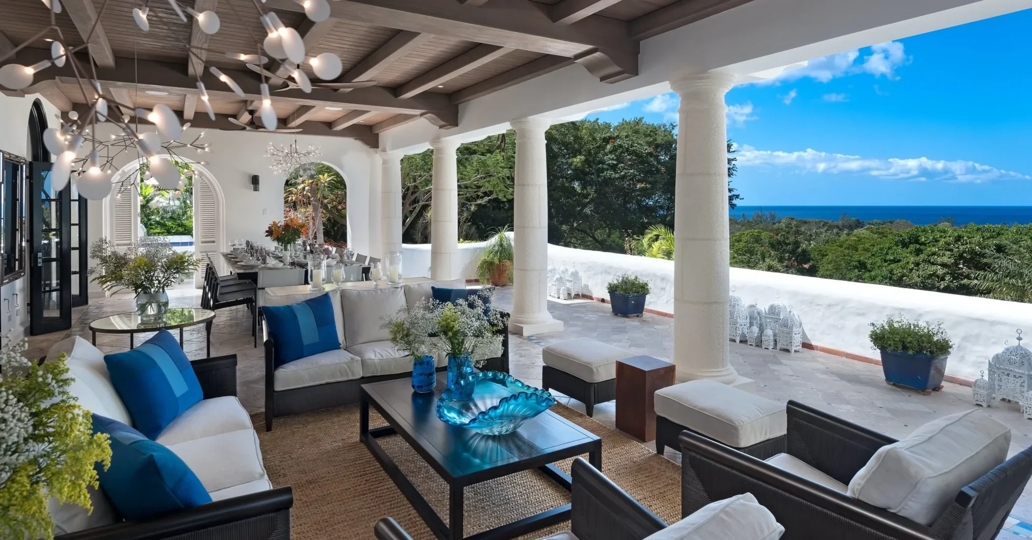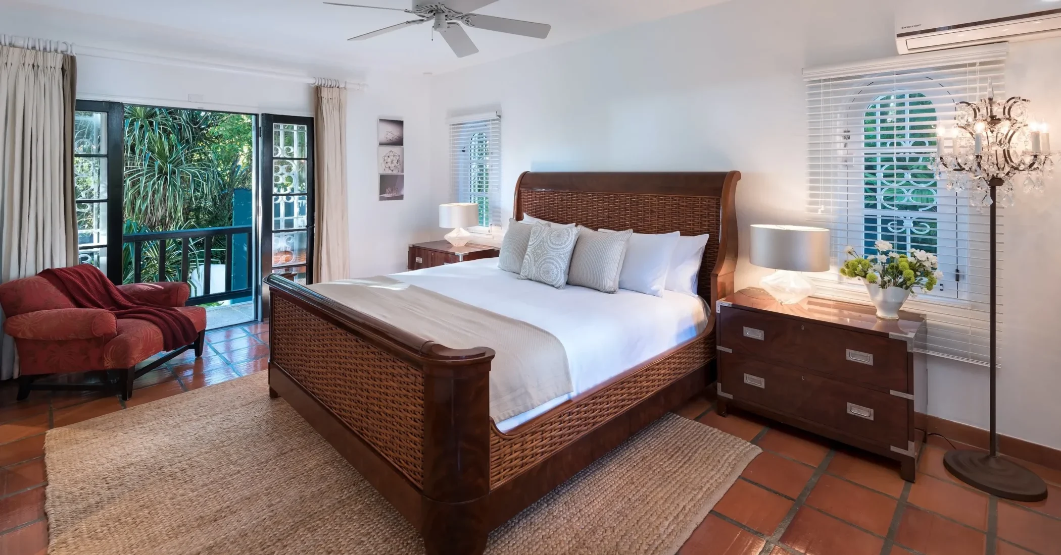 Elsewhere is an exceptionally beautiful villa that sprawls on the Sandy Lane estate. This recently renovated and extended property is surrounded by greenery: arise to the antics of green monkeys in the gardens, observe the hummingbirds, sailing ships and flowering trees by day and catch wonderful views of the sunset each evening. The breeze constantly flows through the various courtyards, patios, loggias, balconies and terraces of this villa that sprawls over two acres on a ridge.