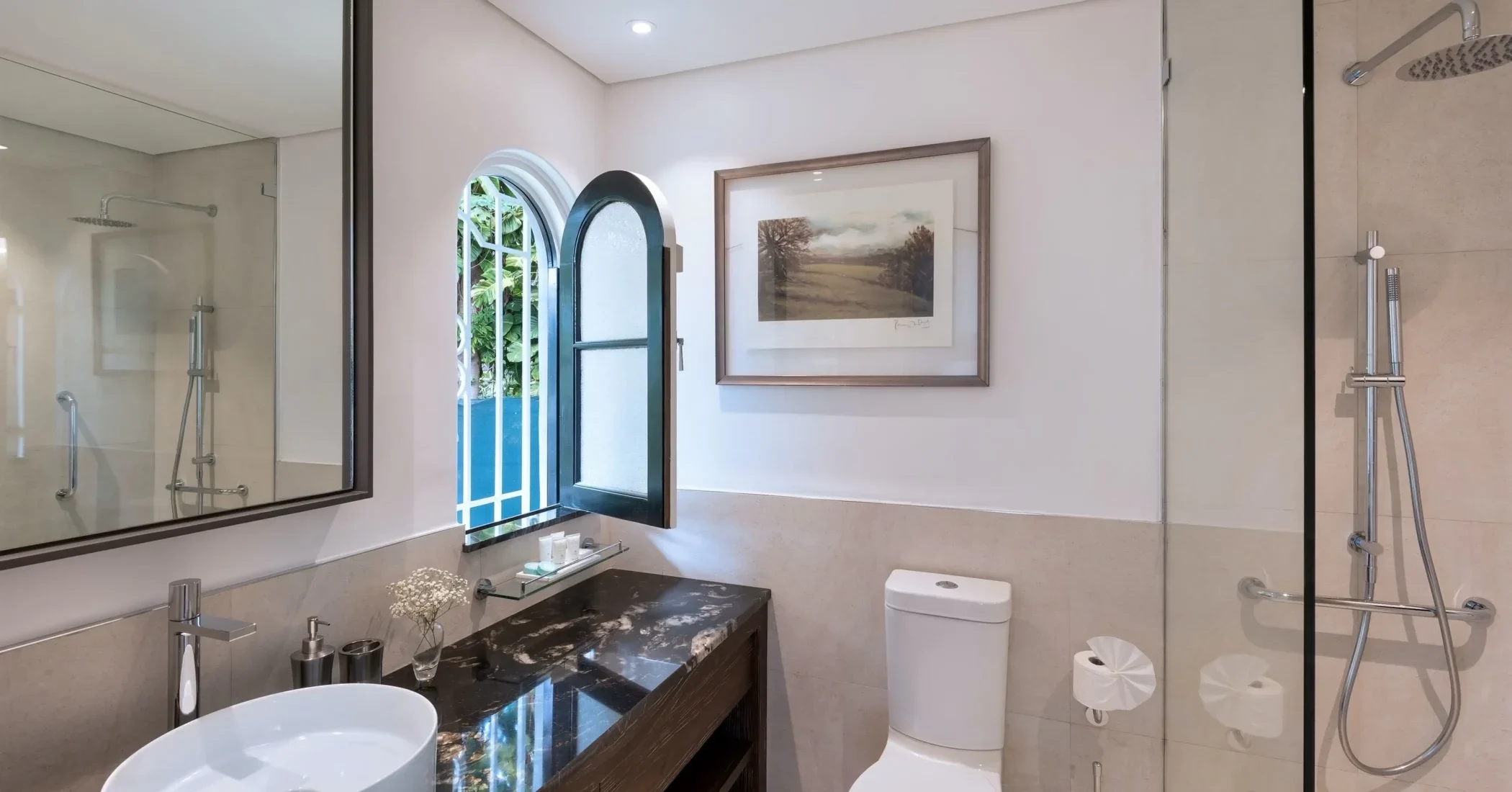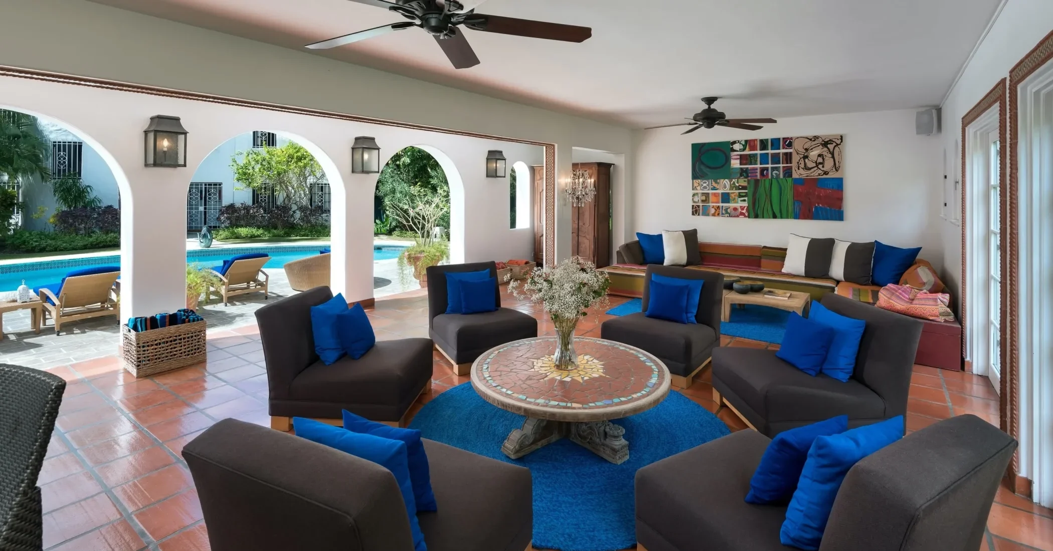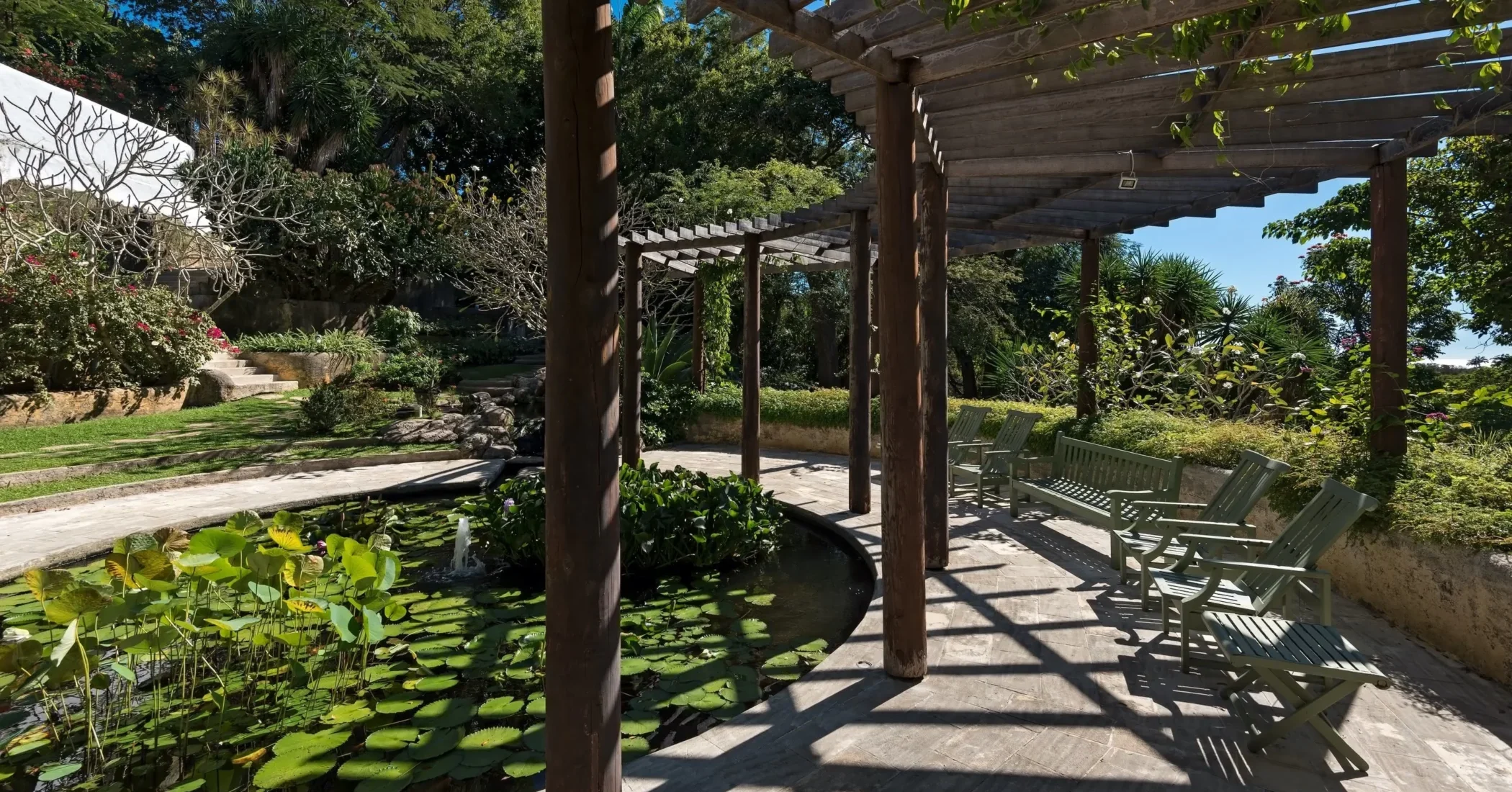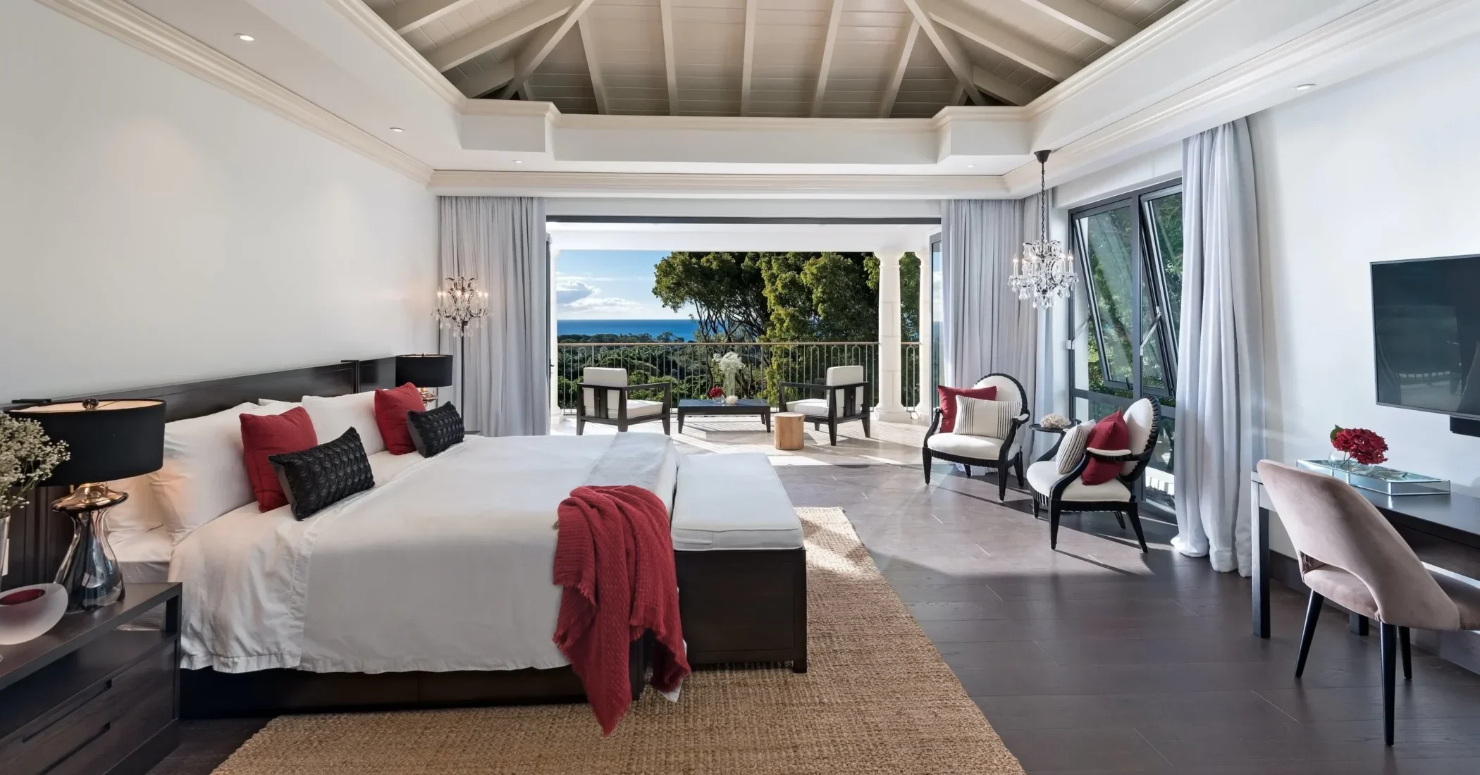 Elsewhere is an exceptionally beautiful villa that sprawls on the Sandy Lane estate. This recently renovated and extended property is surrounded by greenery: arise to the antics of green monkeys in the gardens, observe the hummingbirds, sailing ships and flowering trees by day and catch wonderful views of the sunset each evening. The breeze constantly flows through the various courtyards, patios, loggias, balconies and terraces of this villa that sprawls over two acres on a ridge.