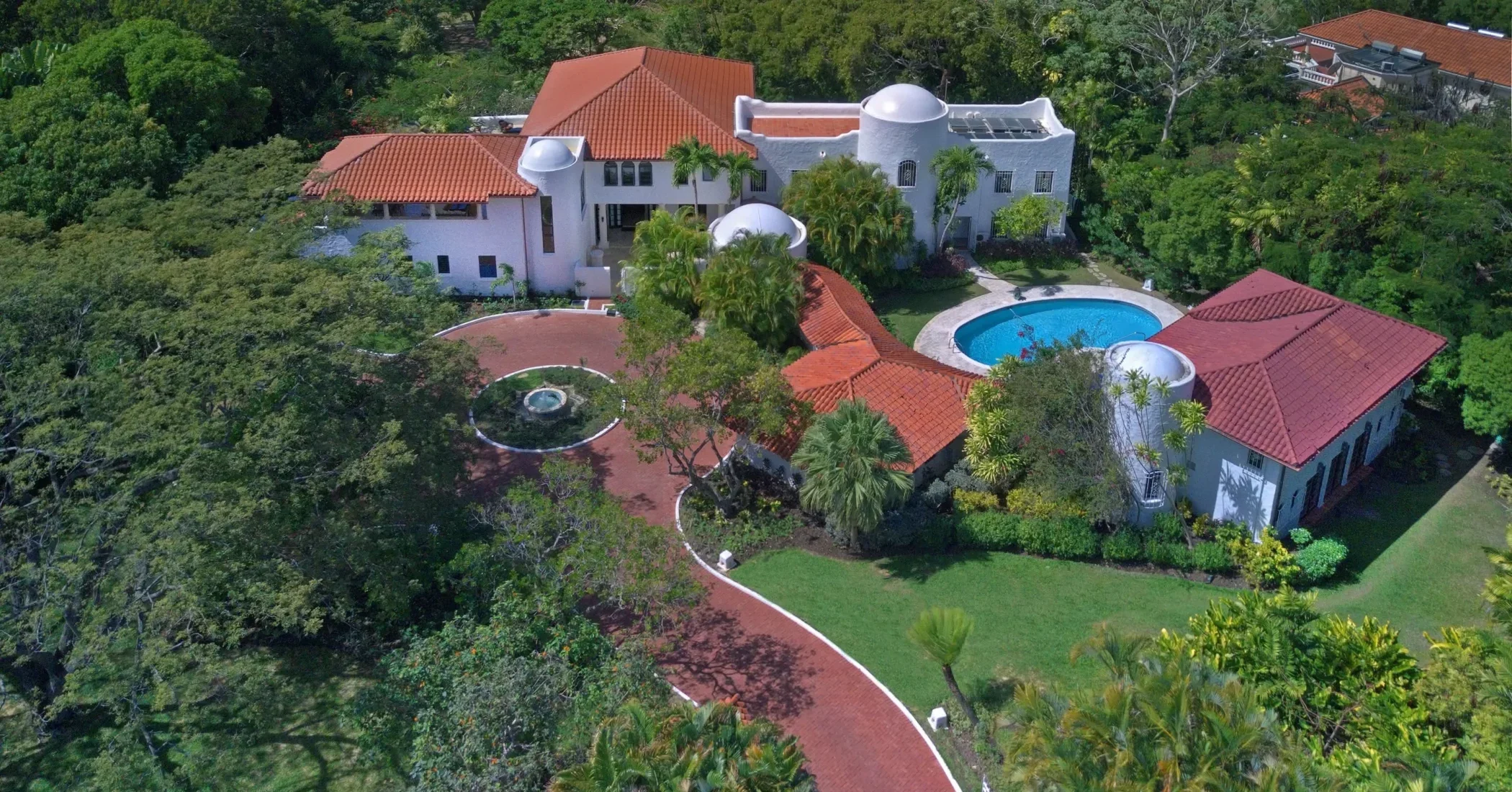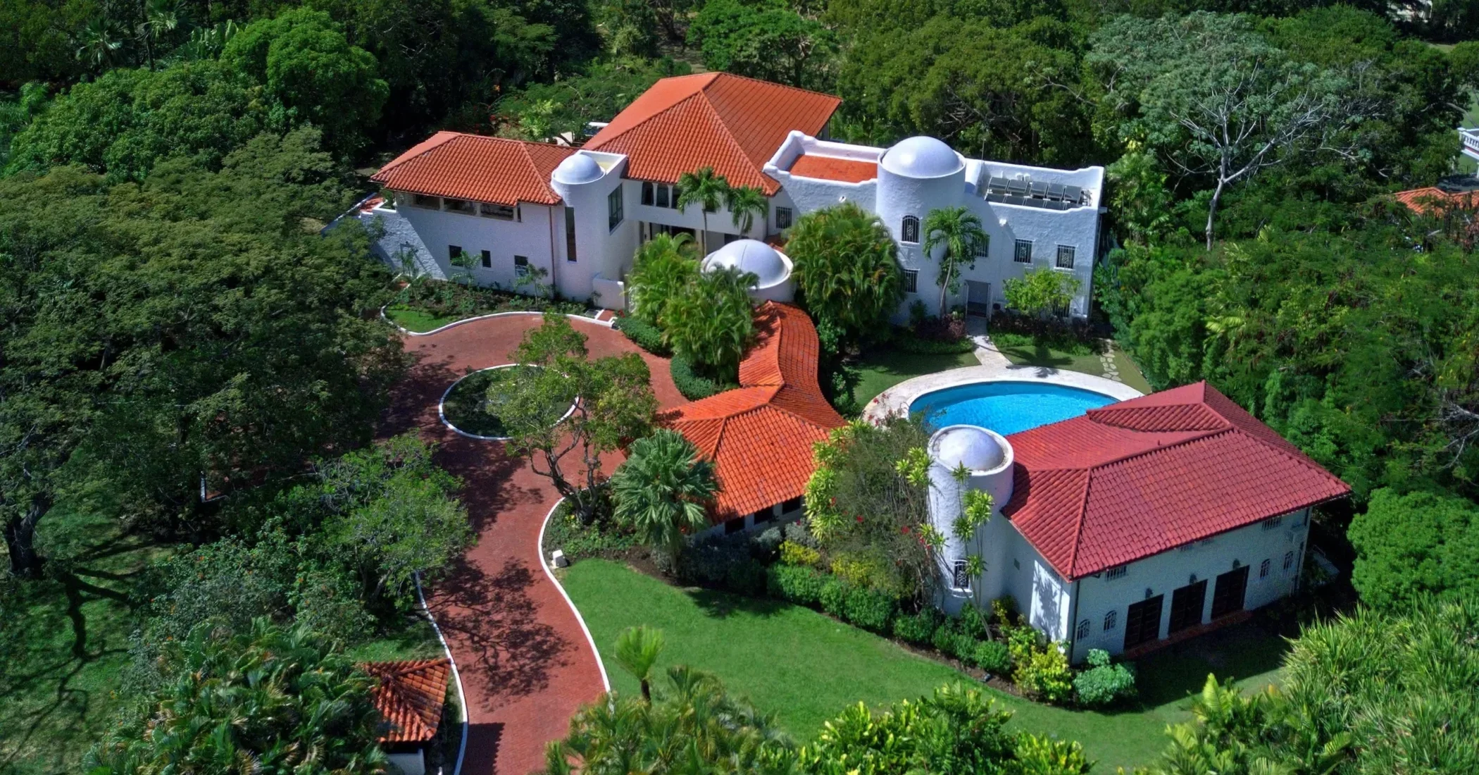 This ten bedroom luxury villa, has Mediterranean style architecture with stucco walls and a terracotta tiled roof with terraces, balconies, patios and courtyards. The property