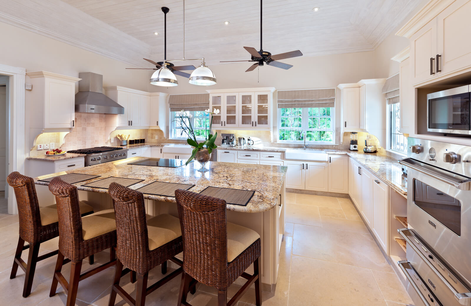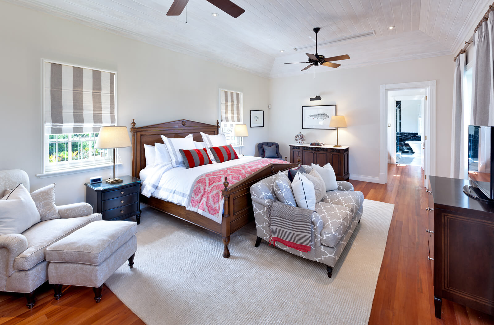 The main living area of Windward boasts an open-plan design, with French doors that span the length of the room, seamlessly connecting the indoor space to the spacious covered veranda, creating a vast area for indoor/outdoor entertaining. Steps from the veranda lead to